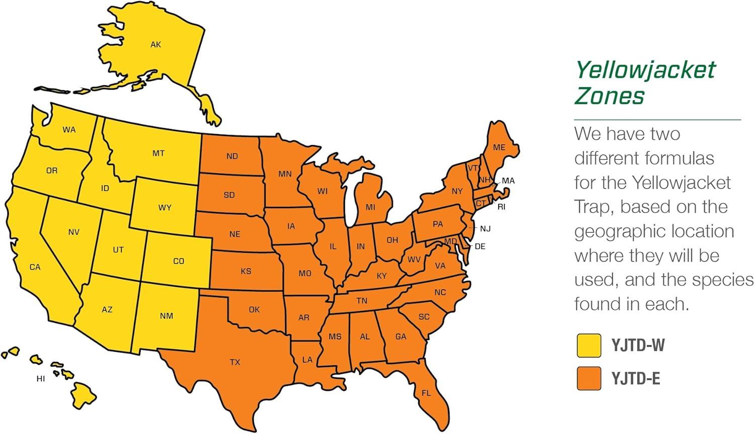 Lure & Eliminate Yellowjackets – This disposable yellowjacket trap targets and traps all major species of yellowjackets found in Central & Eastern States. Please consult the map to ensure you are purchasing the correct trap.
